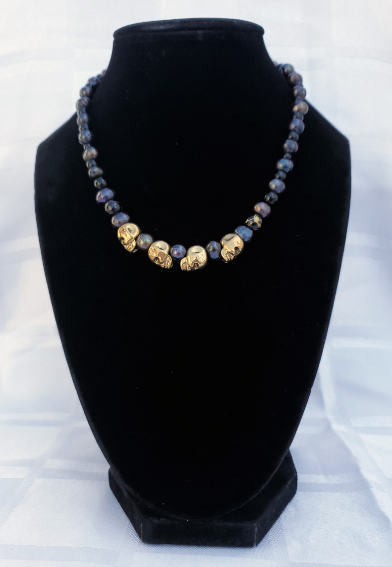 VKei Gold Skull and Pearls Choker