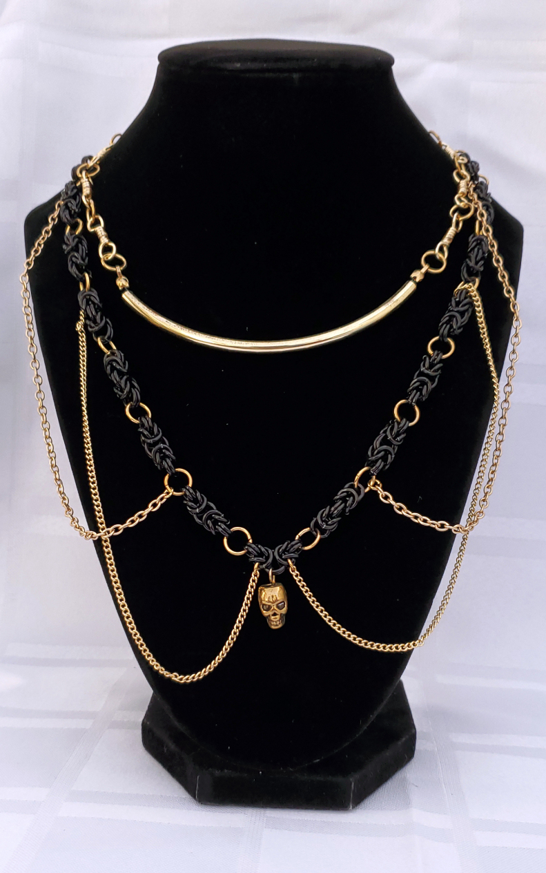 Multi-Layered Gold Skull Necklace