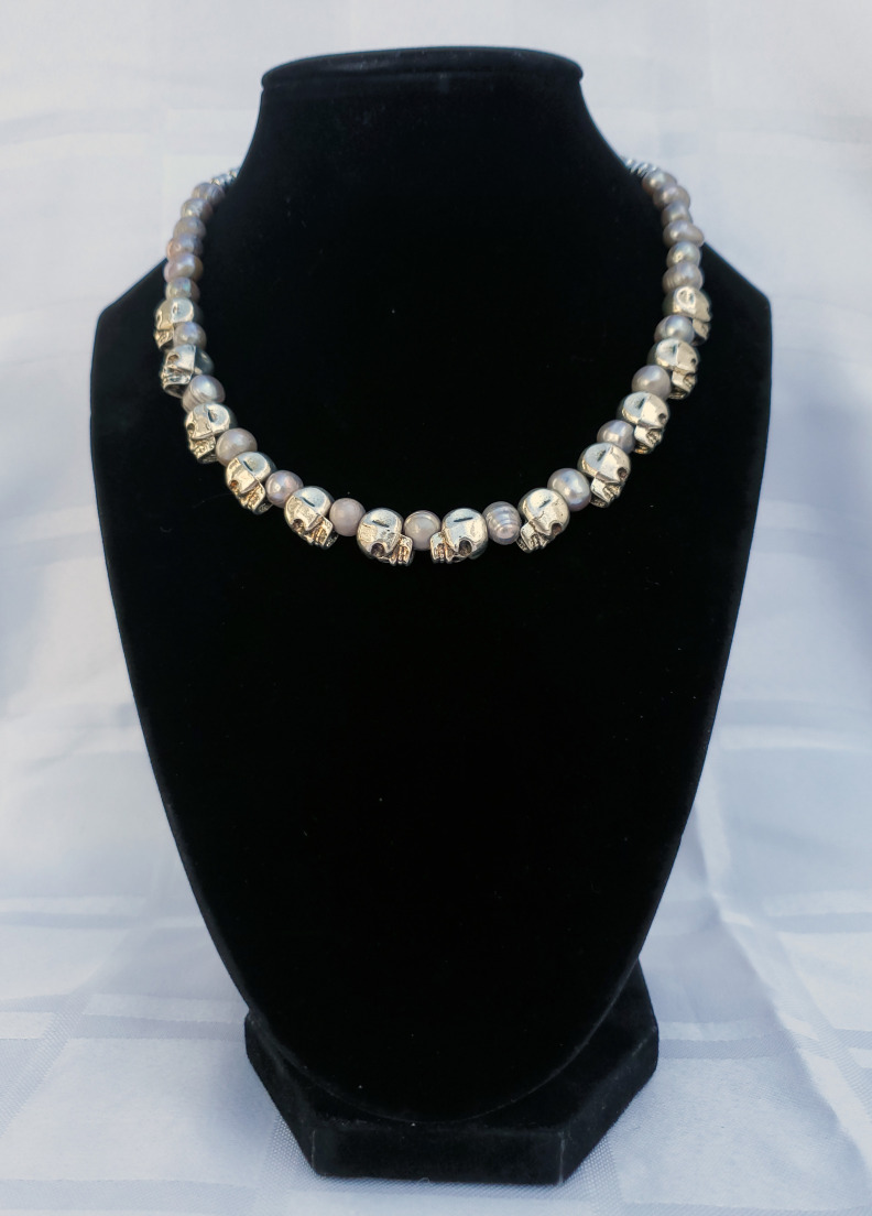 Vkei Silver Skull and Pearls Choker