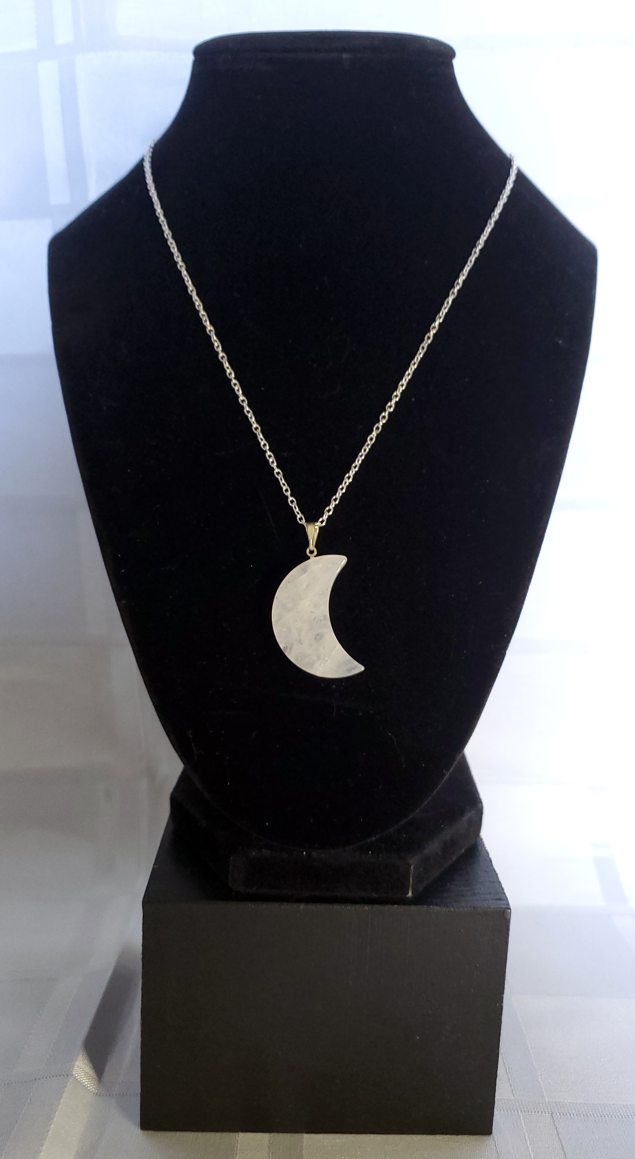 Rose Quartz Moon with Silver Plated Chain
